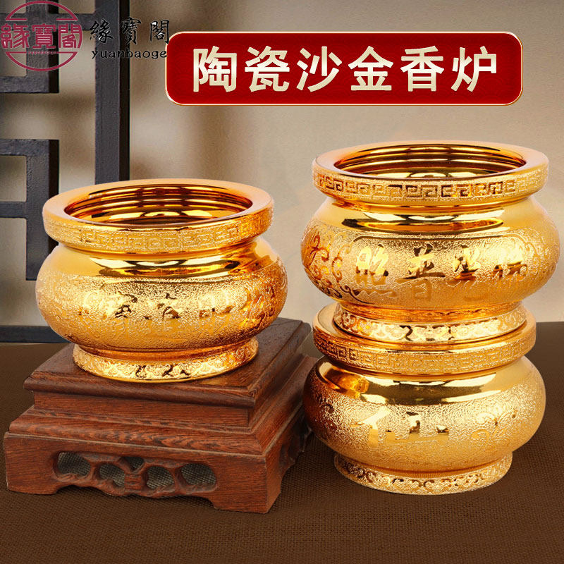 📚 香火供奉家用陶瓷香供炉财神爷专用香炉沙金敬神上香供佛大号香碗