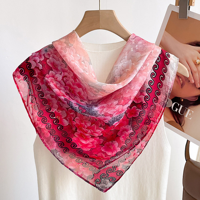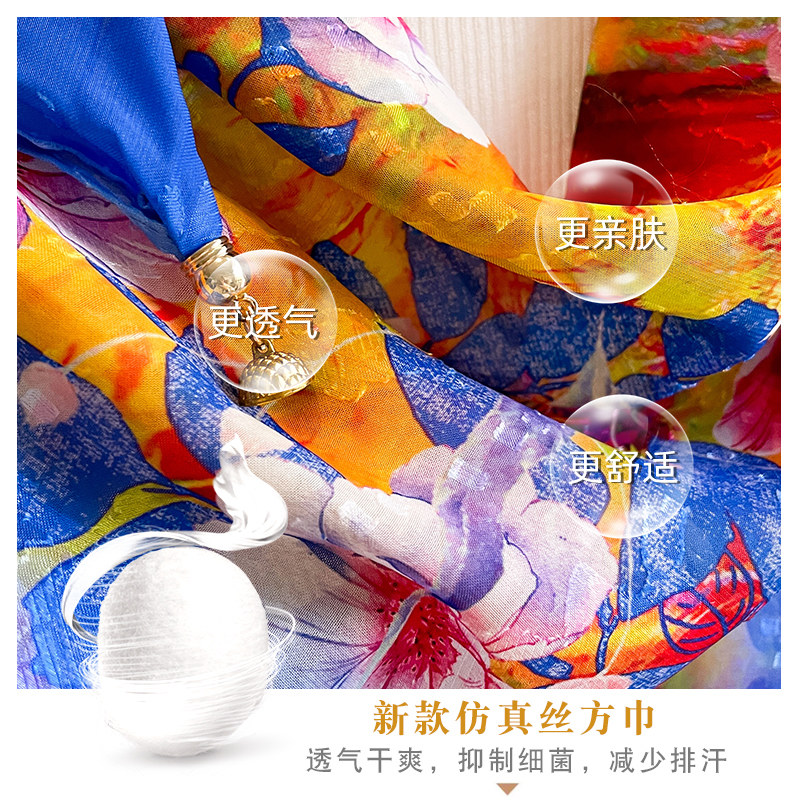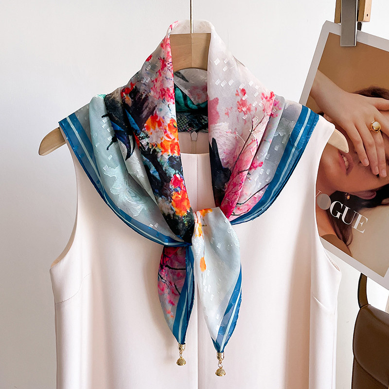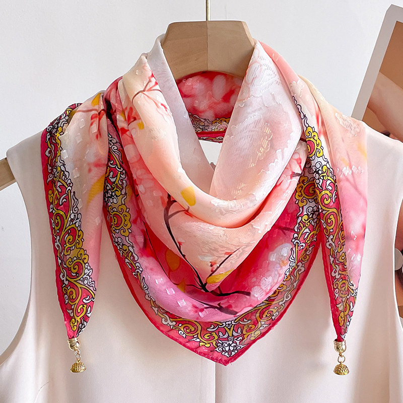 📚 中国风磁吸扣方巾70粉色小丝巾春秋款护颈小围巾女高级感百搭丝巾