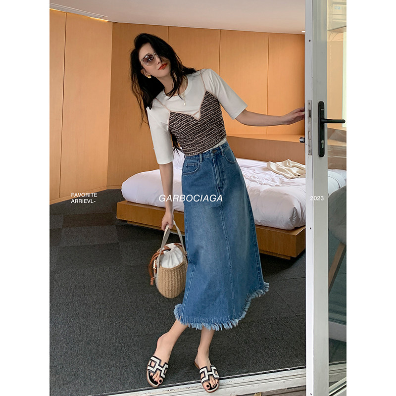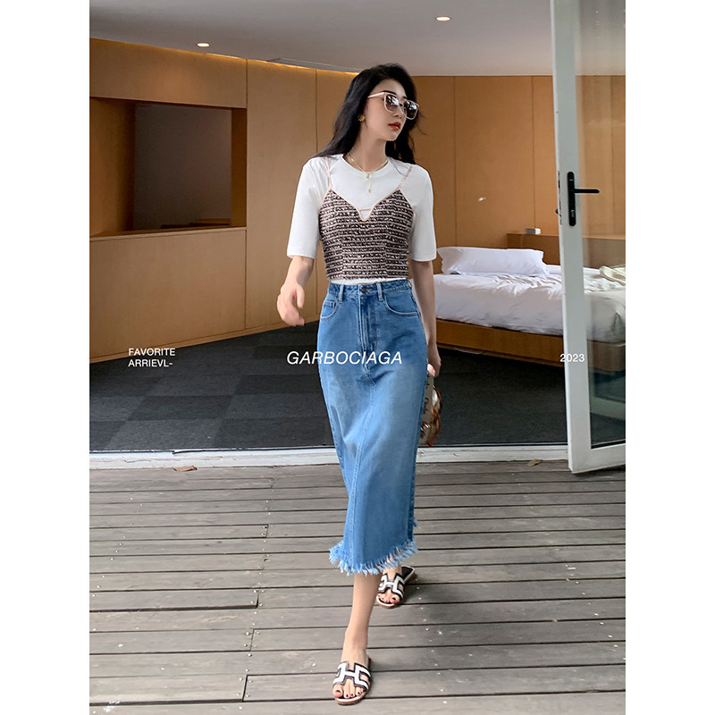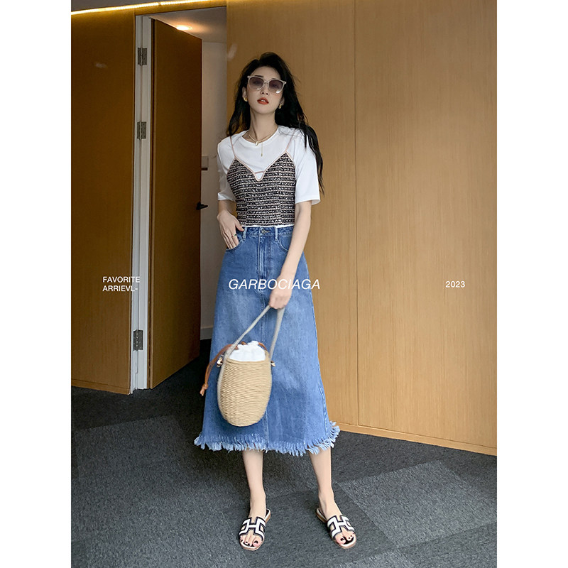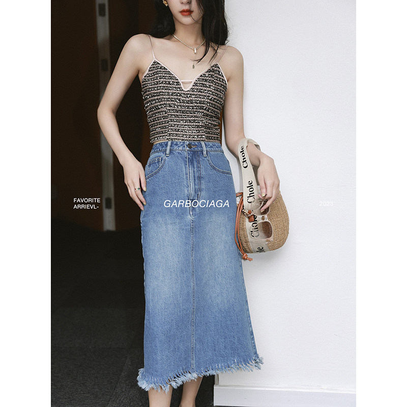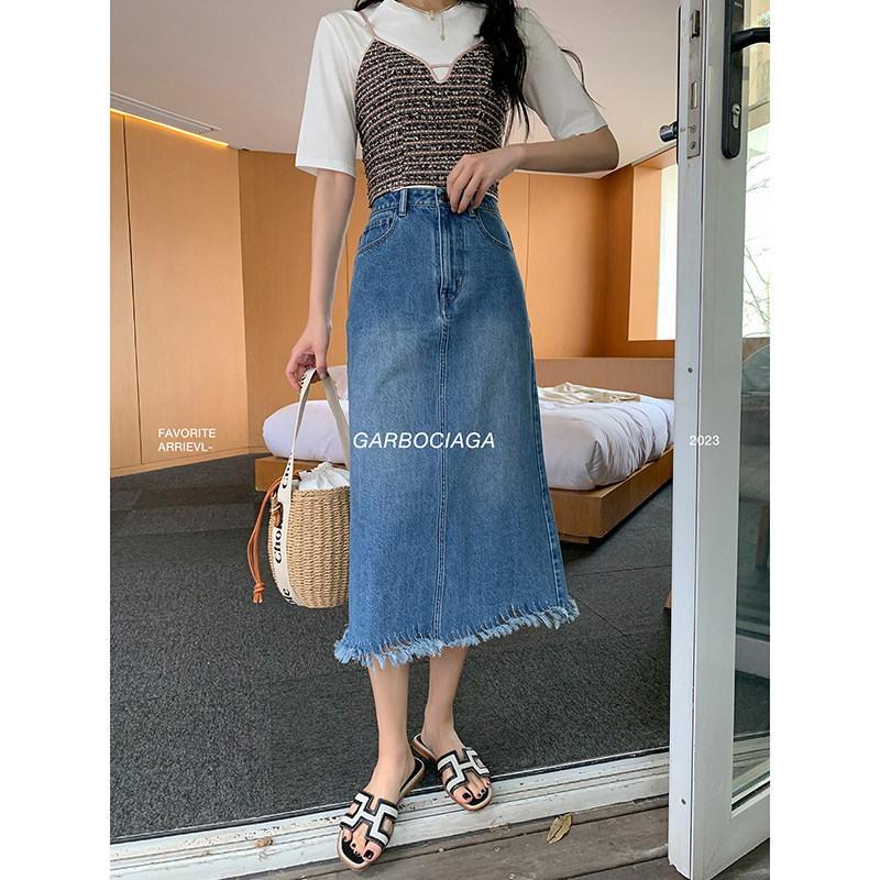 📚 Garbociaga龍喜儿 蓝调时光 复古A字流苏通勤牛仔长半身裙8236
