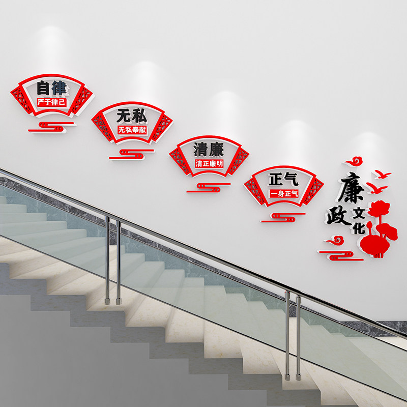 📚 党建文化墙廉政墙贴画企业单位楼梯走廊装饰会议室政府办公室墙贴