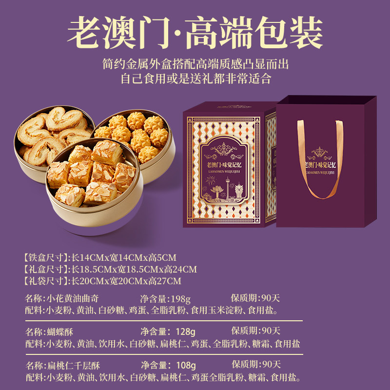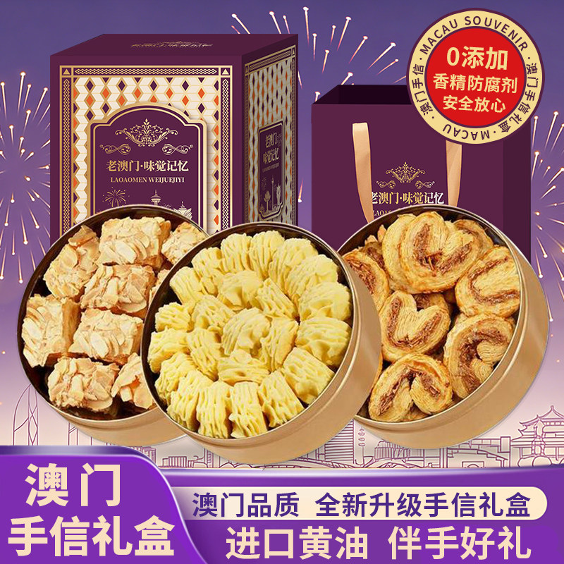 📚 澳门小金盒手信礼盒特产伴手礼盒过年曲奇饼干蝴蝶酥零食饼干礼盒