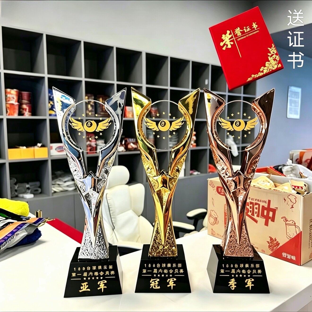 📚 黑八台球水晶奖杯定制定做树脂金属桌球斯诺克比赛冠亚季军奖杯