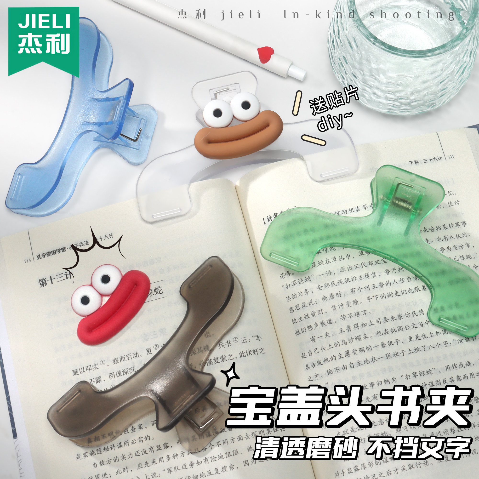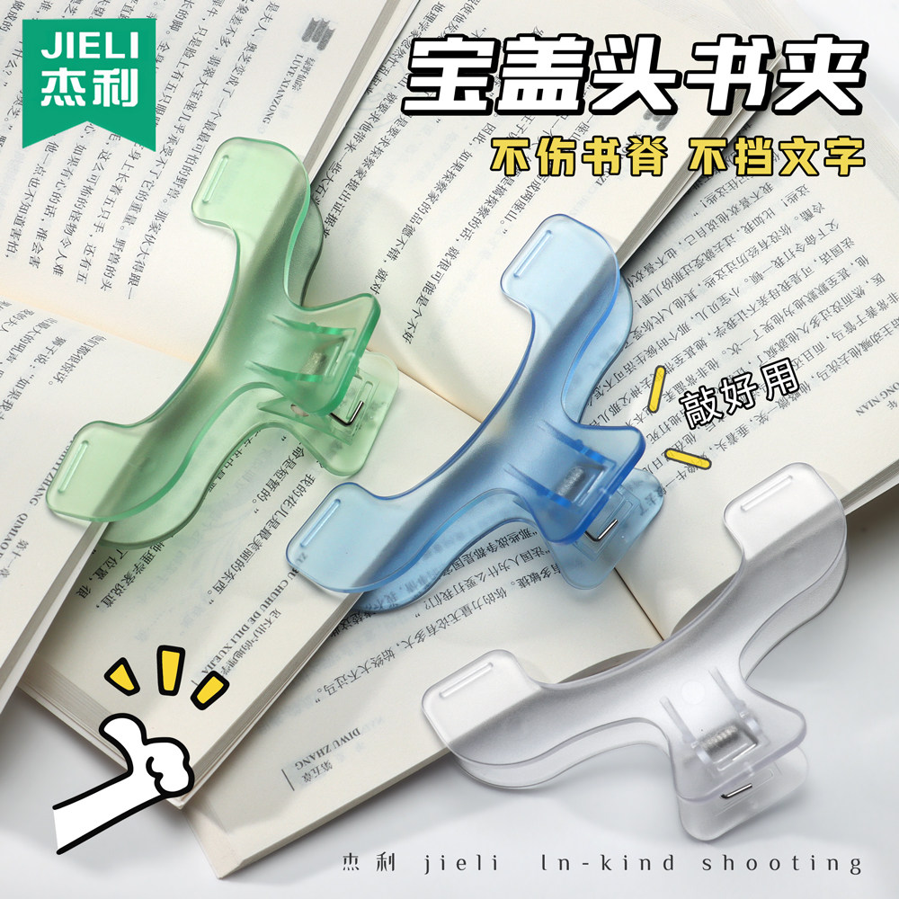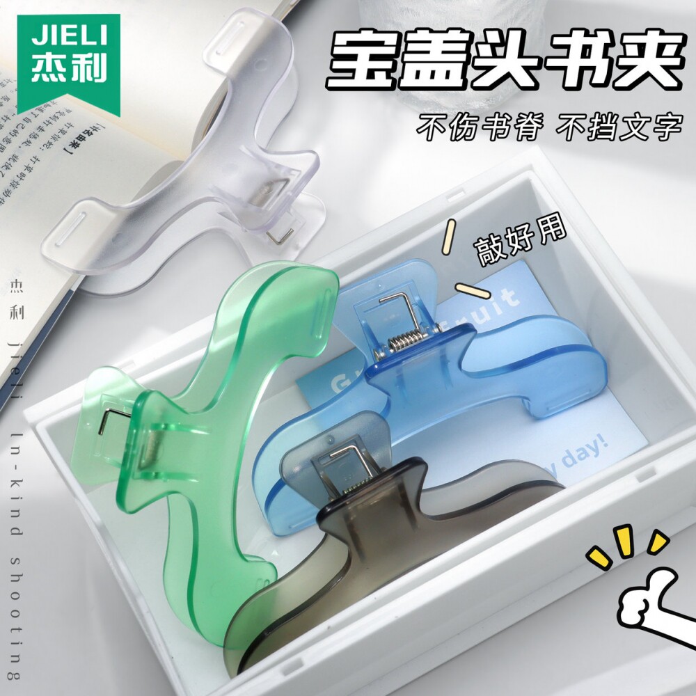 📚 杰利透明书夹大夹子高颜值宝盖头固定器强力大号塑料书本文件票据夹子学生夹乐谱固定夹ins风办公文具夹定制