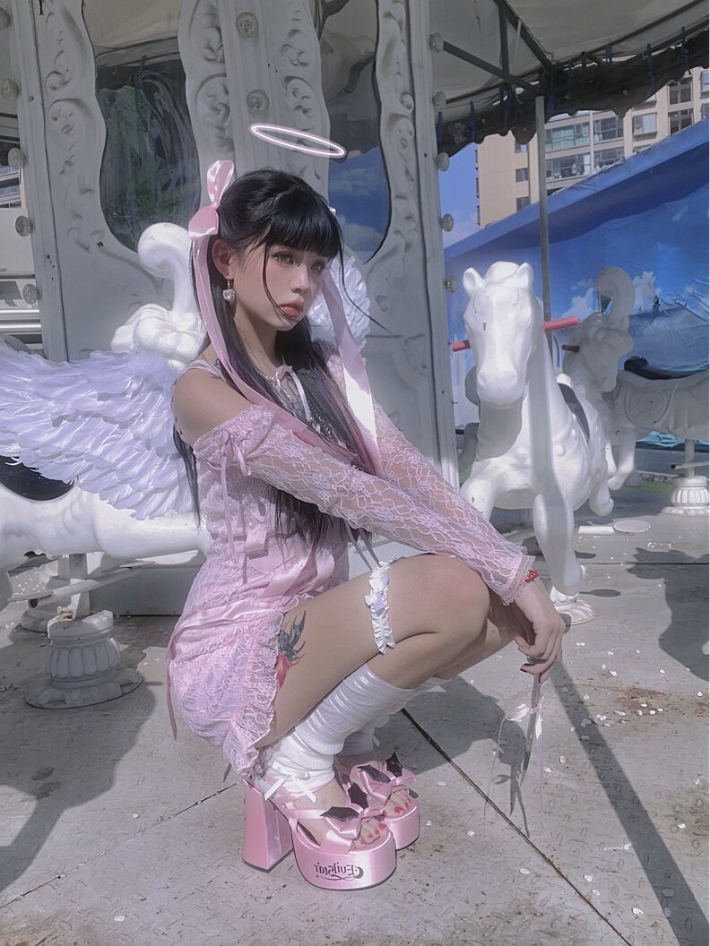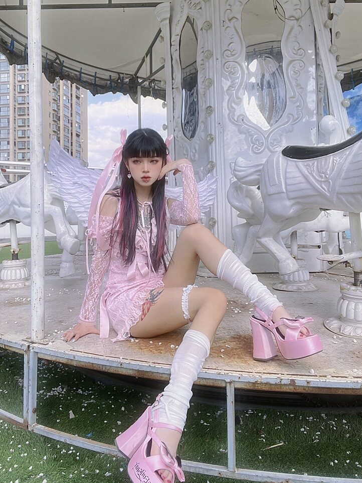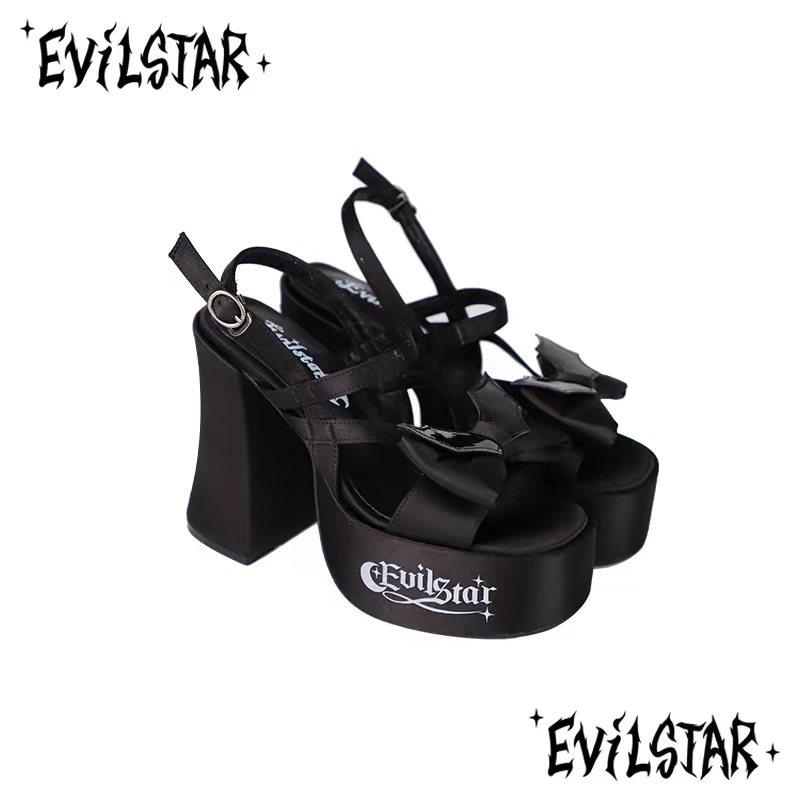 📚 现货 小魅魔缎面原创蝙蝠哥特Y2K辣妹黑粉原创夏季厚底粗跟凉鞋