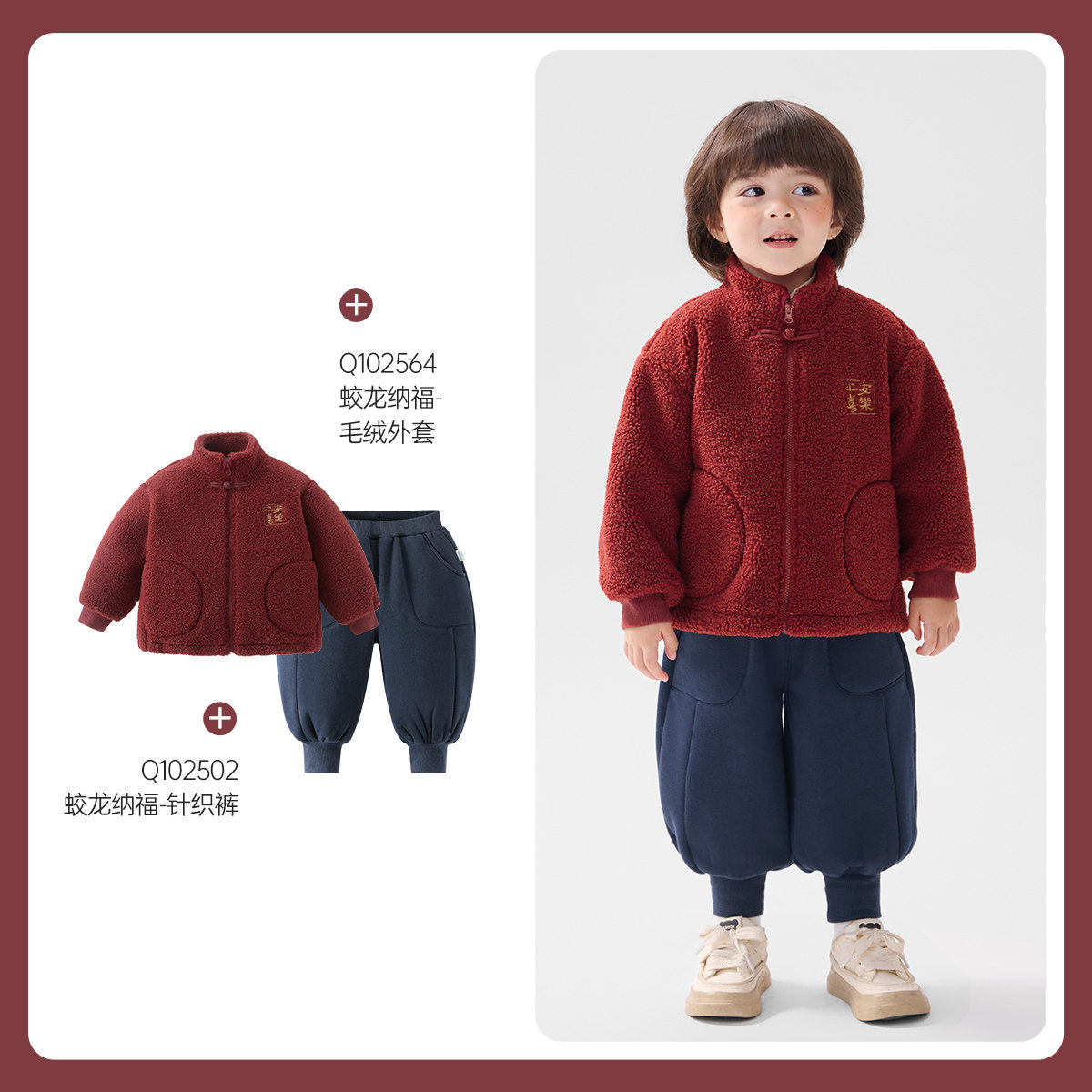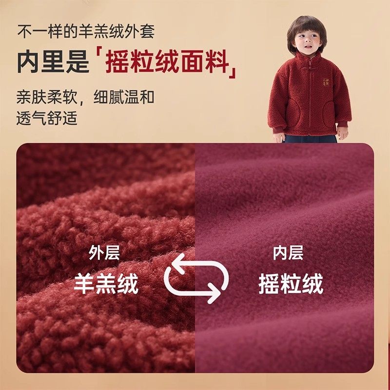 摇粒绒羊羔男童齐齐拜年