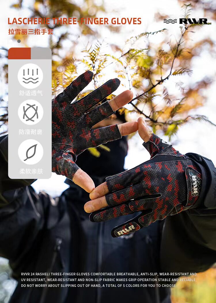 📚 RVVR23新款手套路亚冰丝防晒钓鱼手套五指路夏季透气防护速干