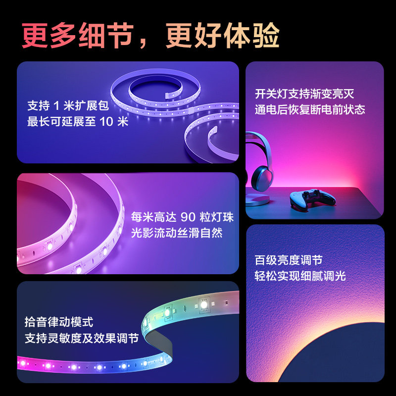📚 Aqara绿米联创流光溢彩灯带T1 彩光氛围led已接入HomeKit智能灯带