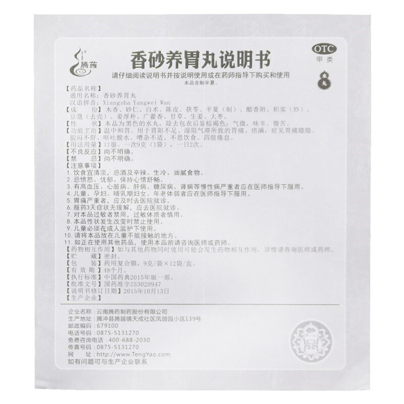 📚 腾药 香砂养胃丸 9g*12袋/盒胃痛呕吐酸水不思饮食四肢倦怠