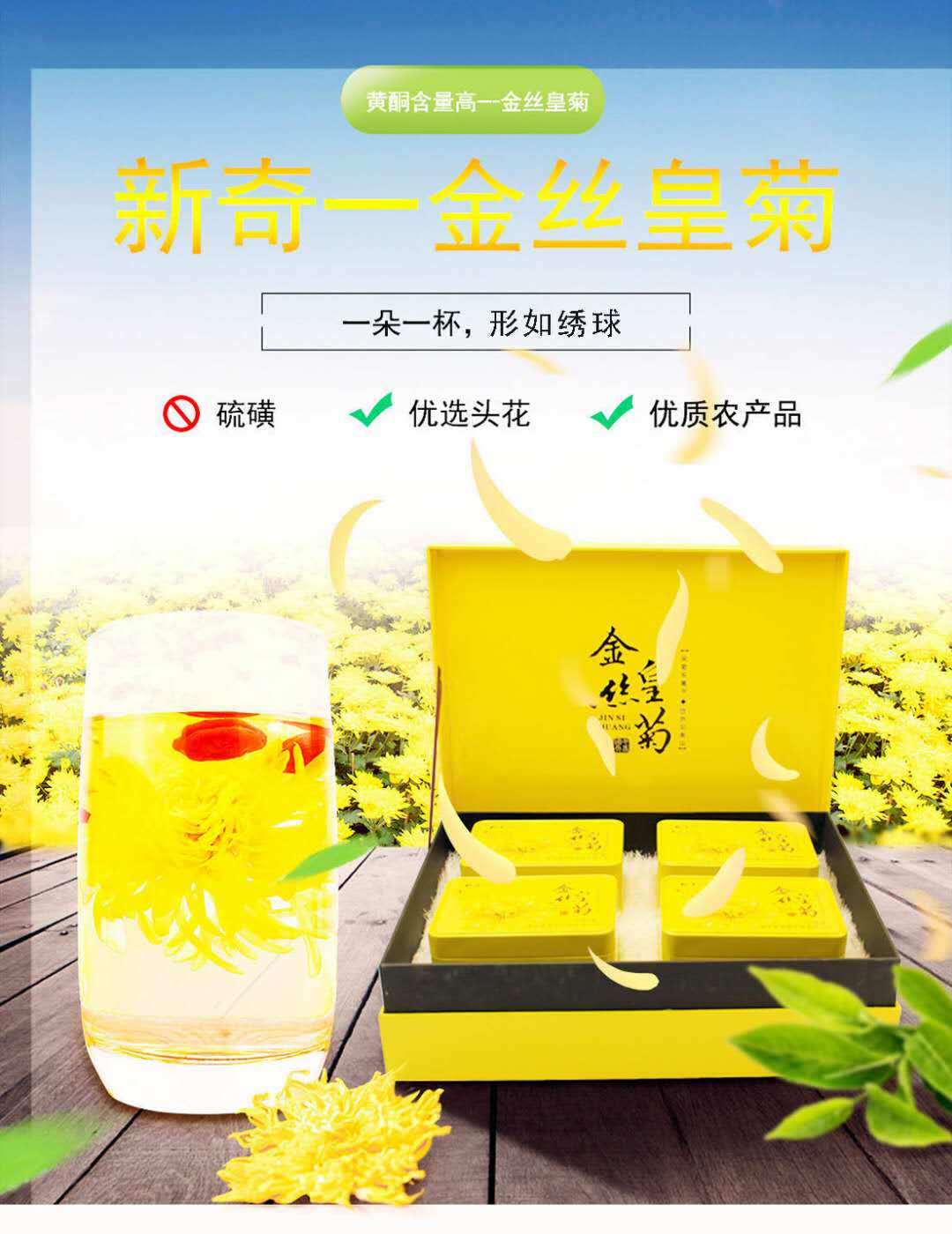 📚 湖北麻城福田河菊花茶金丝皇菊一朵一杯大别山花茶新奇一礼盒包邮