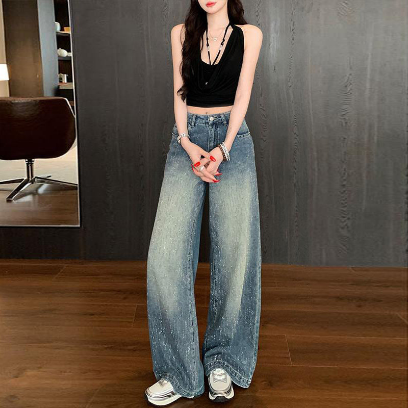 📚 满天星河烫钻阔腿牛仔裤女2026冬季加绒高腰宽松显瘦高级感拖地裤