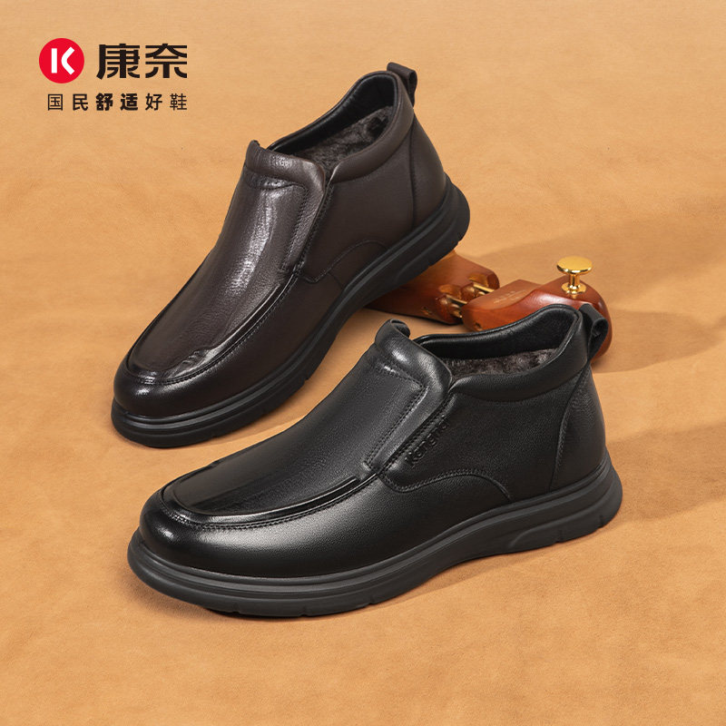 📚 康奈男鞋冬季商务头层牛皮保暖舒适百搭休闲皮鞋办公室鞋