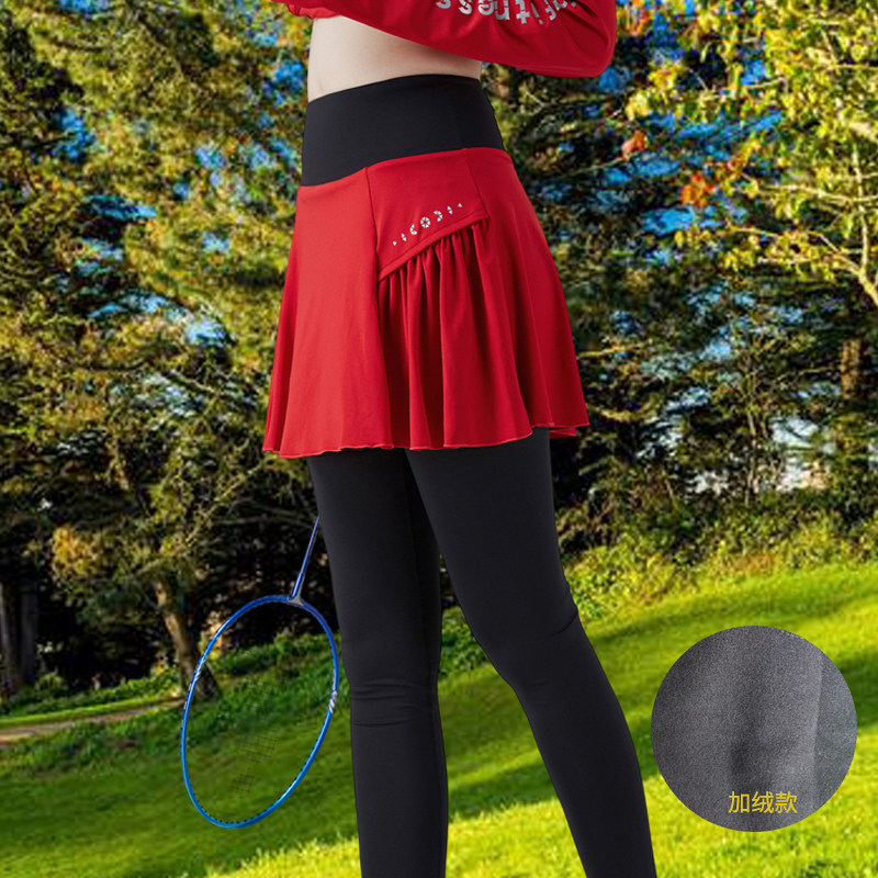 📚 裙裤女士薄款多口袋加绒裤子假两件网球裤裙运动短裙百褶裙白色裙