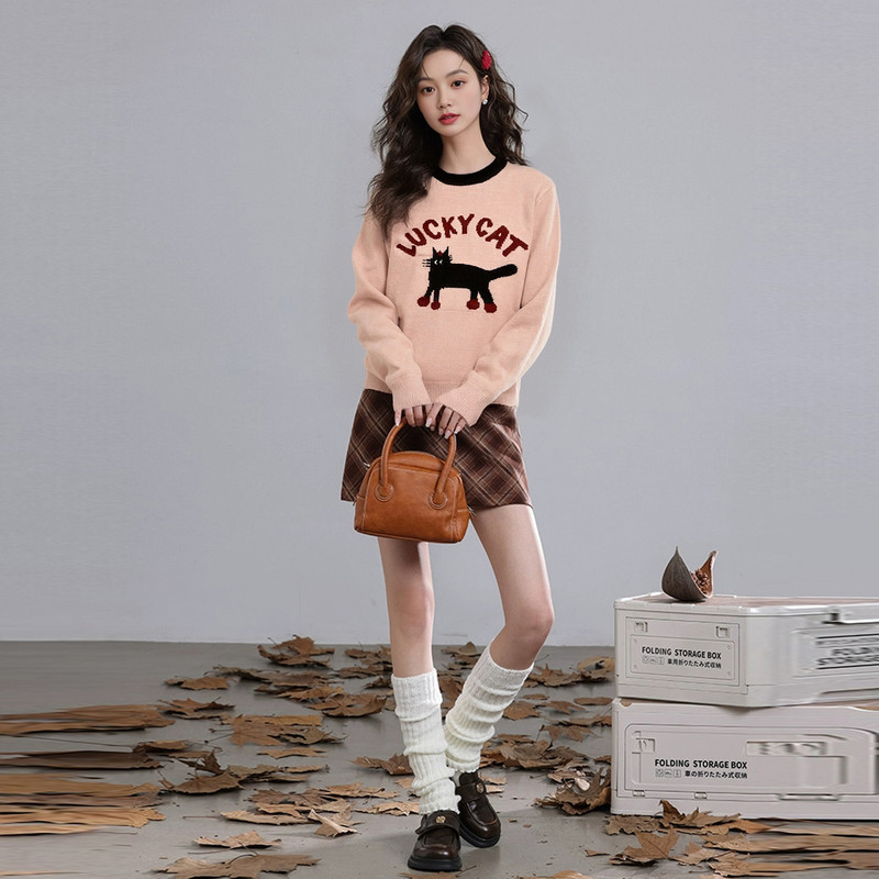 📚 快鱼2025冬新款女士圆领毛衣小猫图案活泼洋气绵羊绒保暖舒适亲肤