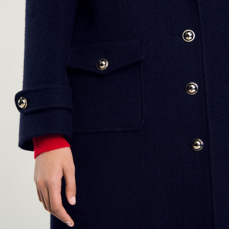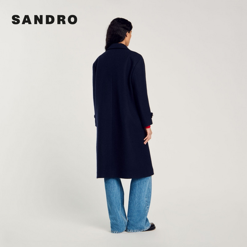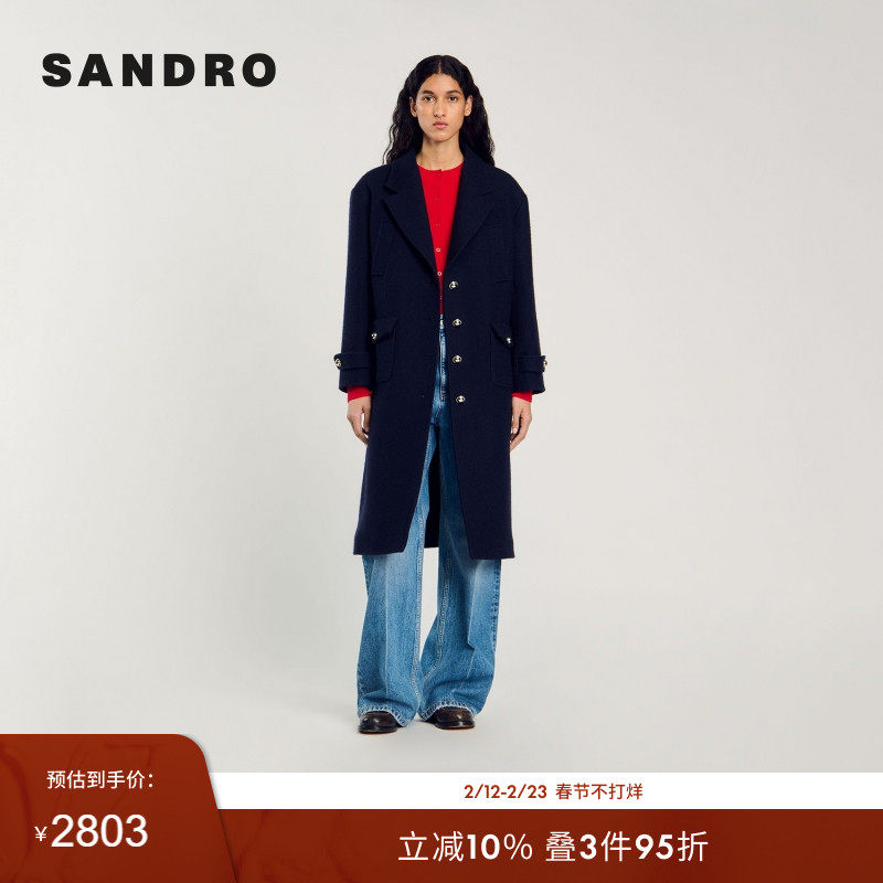 📚 SANDRO Outlets秋冬女装法式高知风通勤毛呢深蓝色中长款大衣外套