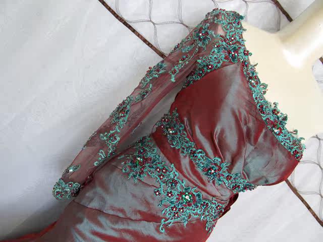 📚 魅惑实拍法国原单重磅刺绣贴花钉珠单肩修身晚礼服宴会连衣裙孤品