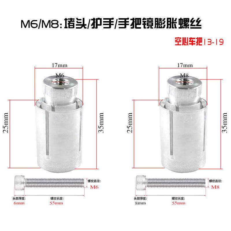 📚 M6M8摩托车手把镜堵头护手弓球头膨胀管电动车爆炸螺丝13-19M通用