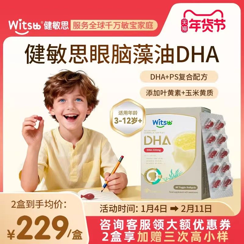 📚 witsbb健敏思眼脑学龄DHA藻油非鱼油3岁+PS叶黄素3岁以上青少年