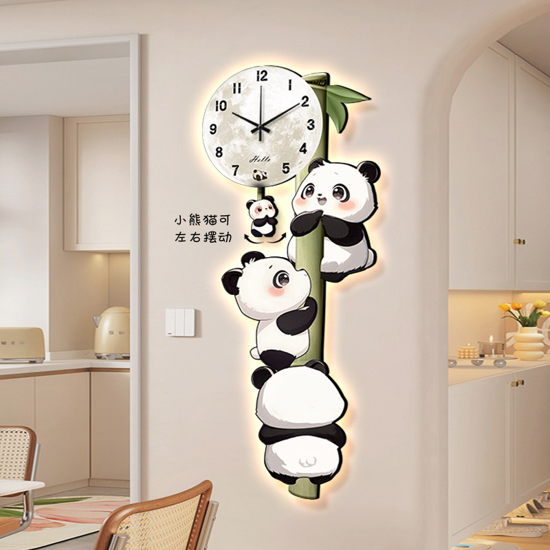 📚 熊猫钟表挂钟客厅2026新款高级感创意时钟挂墙电视墙背景装饰画