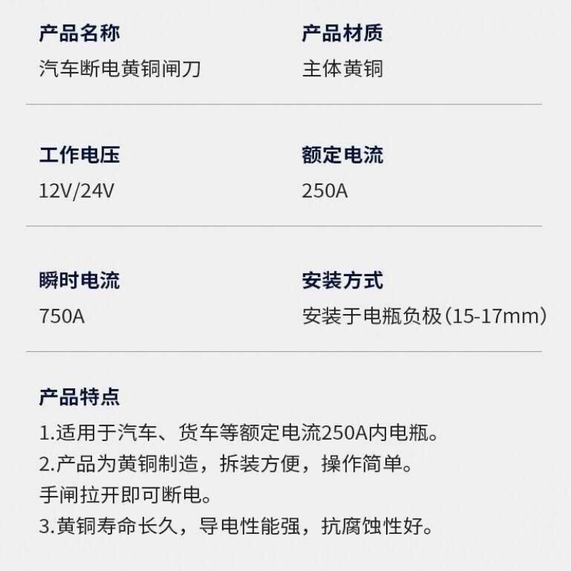 📚 负极汽车电瓶黄铜闸刀开关小车货车通用电源改装12v24v电池接线桩