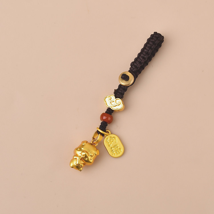 📚 铜镀金十二生肖钥匙挂件金鼠来财手机链沙金老虎本命年钥匙扣挂坠