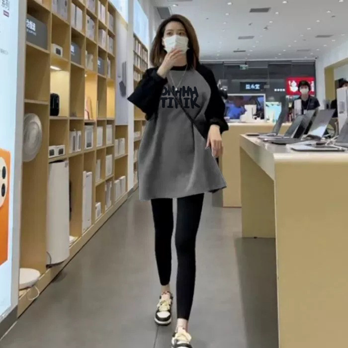 🔥种草!秋冬必备!中长款长袖T恤女装搭配鲨鱼裤,券后价仅需15.6💰