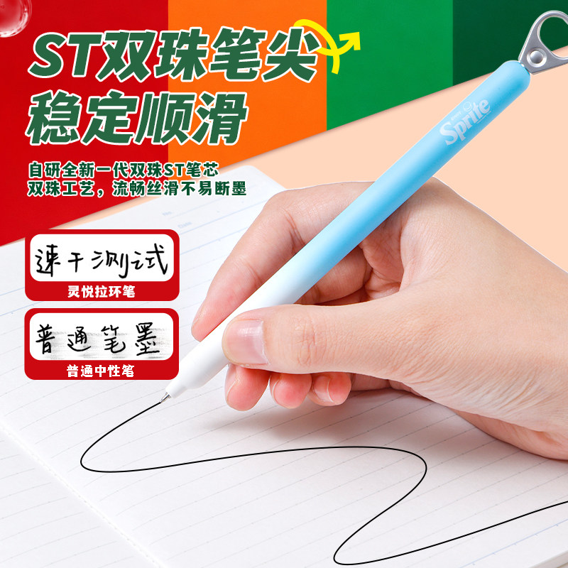 📚 KACO灵悦联名拉环中性笔可乐雪碧芬达拉环创意高颜值速干按动0.5mm黑笔好物文具学生刷题办公签字笔大学生