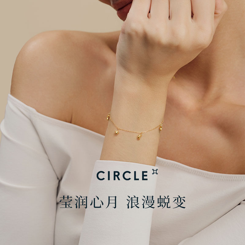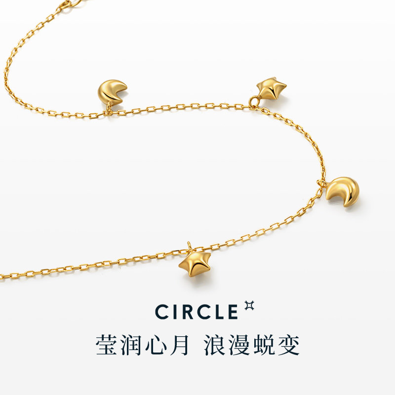 📚 CIRCLE珠宝心月系列18K黄金星星月亮吊坠手链浪漫星月手饰礼物