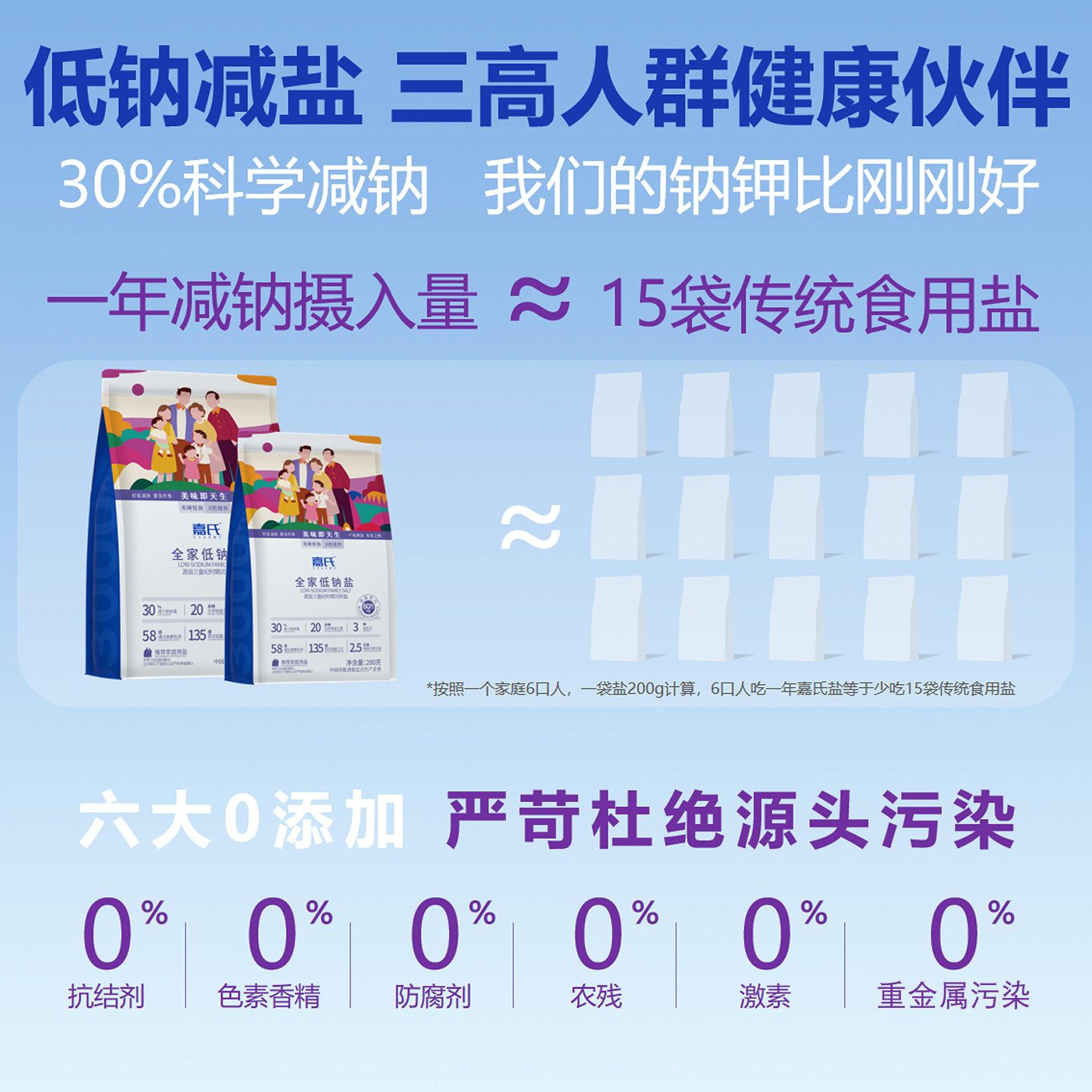 📚 嘉氏家用食盐低钠盐高钙富钾无碘减钠零添加抗结剂甲状腺调味盐