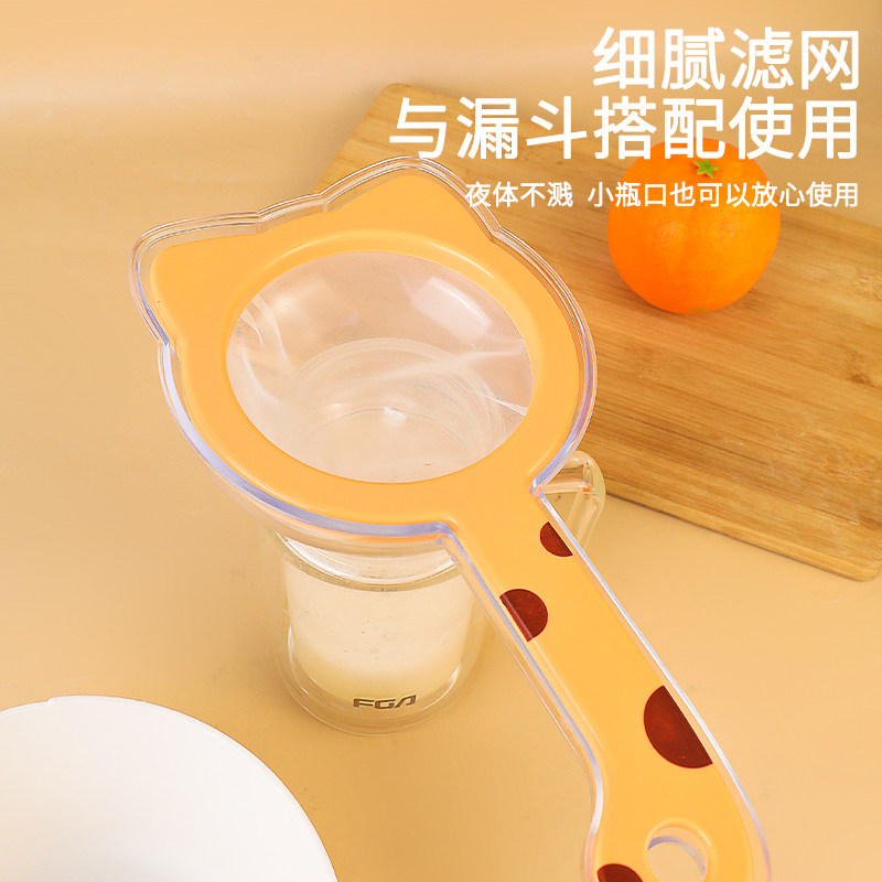 📚 猫咪过滤筛厨房家用便携手持式豆浆果蔬菜残渣漏斗过滤网筛
