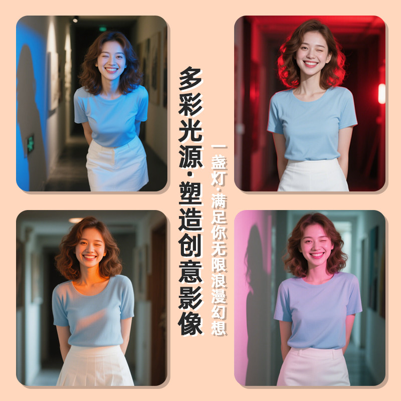 📚 四光源摄影手电筒补光灯RGB人像拍照户外发丝打光拍照神器调焦充电网红直播灯光效造影聚光灯日落夕阳氛围灯