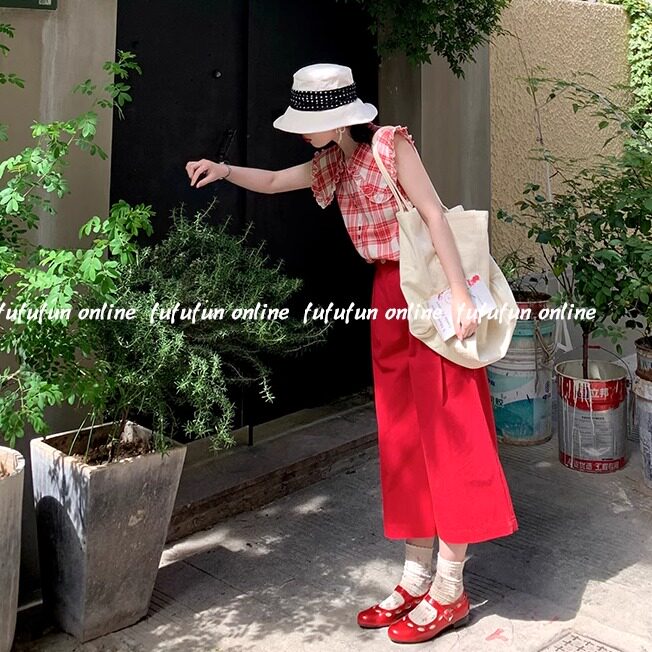 📚 fufufun「昭和少女」原创显白红格纹日系复古大翻领上衣衬衣