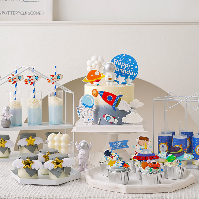 📚 宇航员系列甜品台纸杯蛋糕装饰插牌航天员生日推推乐烘焙布置摆件