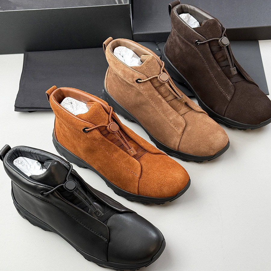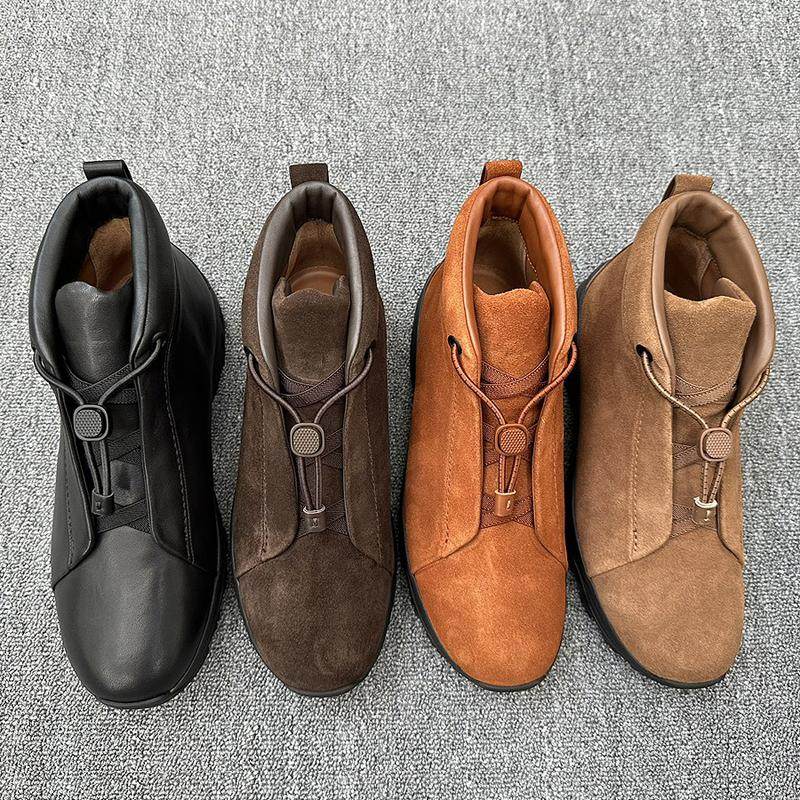 📚 高帮男鞋优质麂皮Triple Stitch奢华休闲走秀款三重松紧带易穿脱