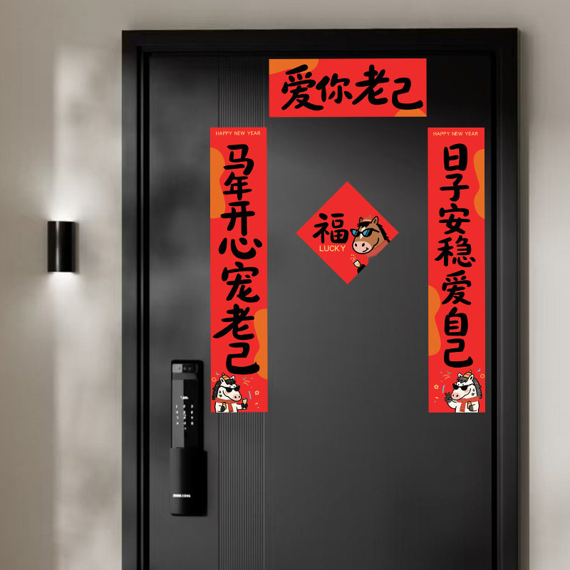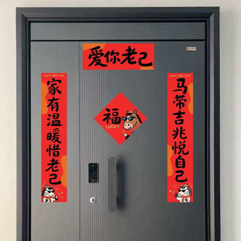 📚 爱你老己马年对联磁性新年春联对联2026年入户门搞笑趣味春节装饰