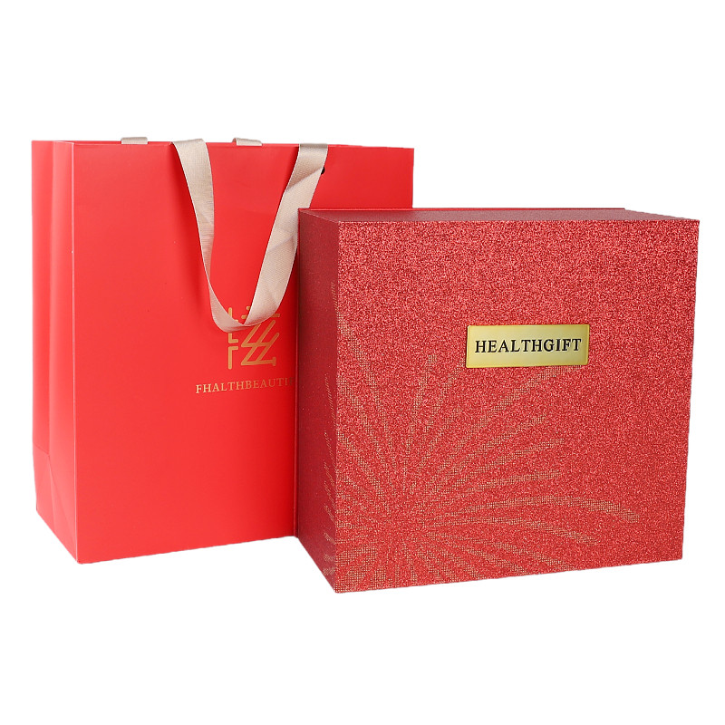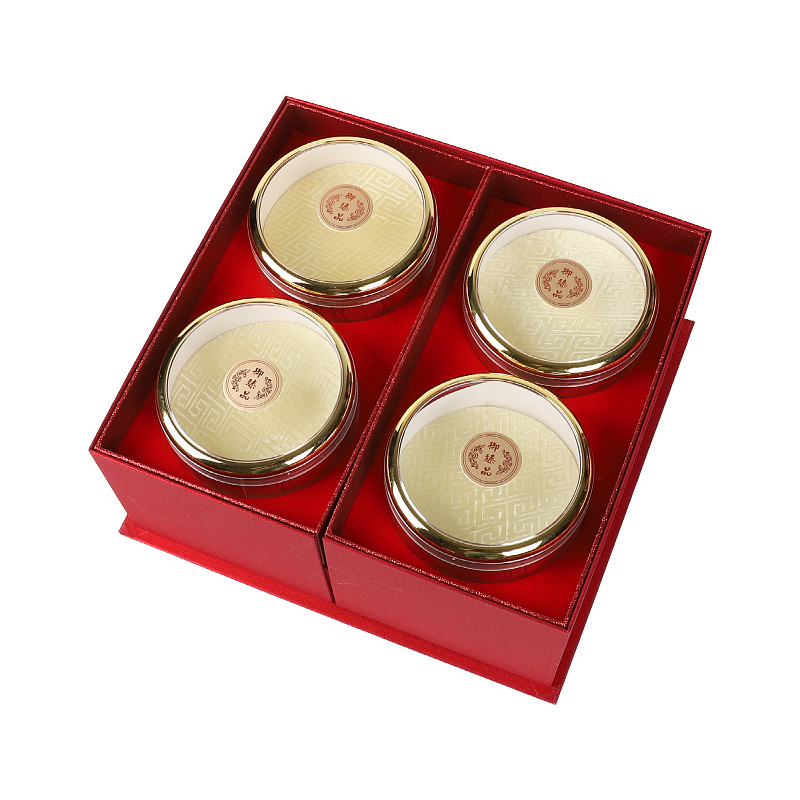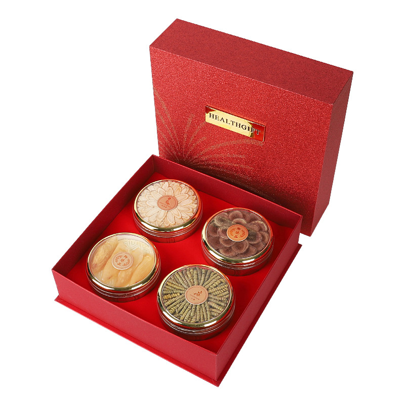 📚 红色磨砂烟花双层五拼包装盒西洋参石斛燕窝圆盒滋补养生礼盒空盒