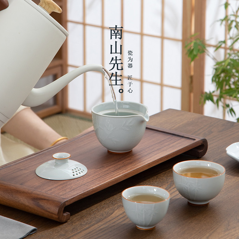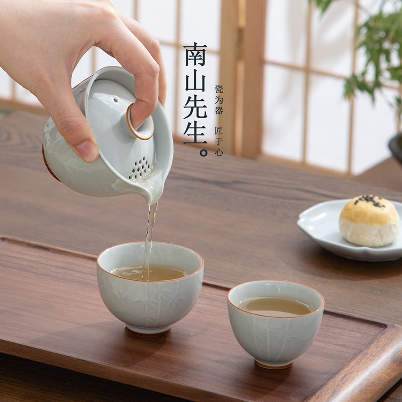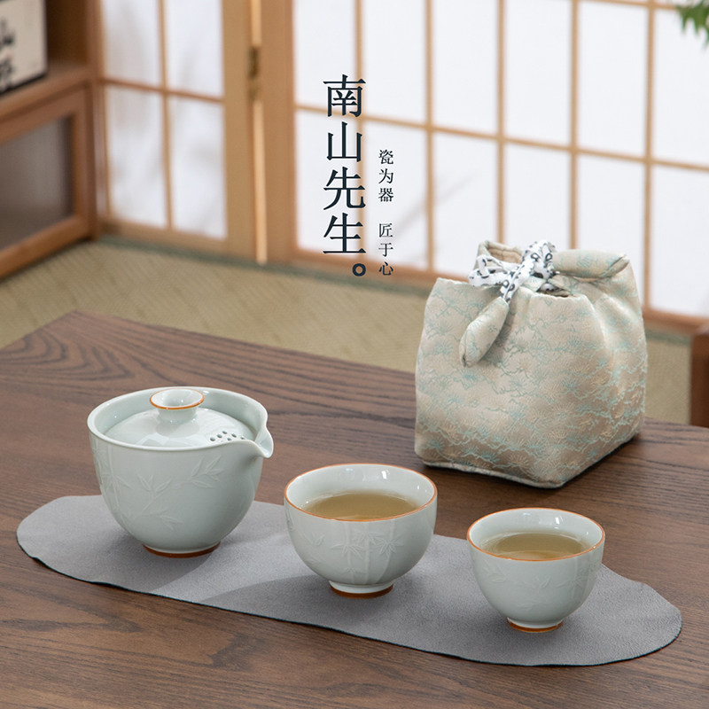 📚 南山先生观竹快客杯陶瓷一壶二杯旅行茶具户外泡茶壶露营便携式包