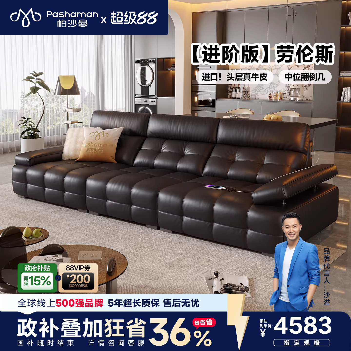 📚 帕沙曼劳伦斯真皮沙发意式极简客厅头层牛皮2026新款翻倒几高级