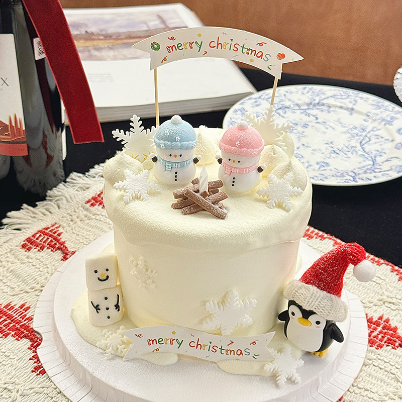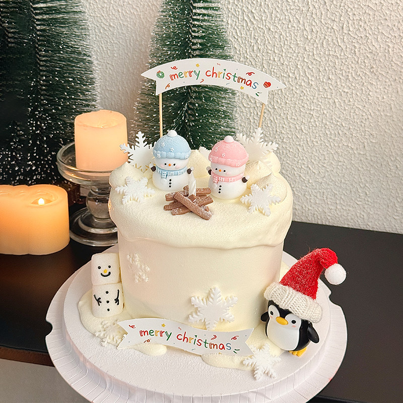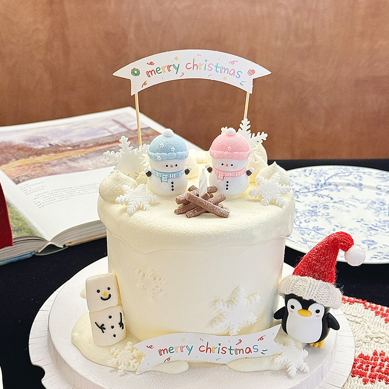 📚 网红2026圣诞节雪人蛋糕装饰小企鹅摆件圣诞快乐横幅插旗雪花装扮