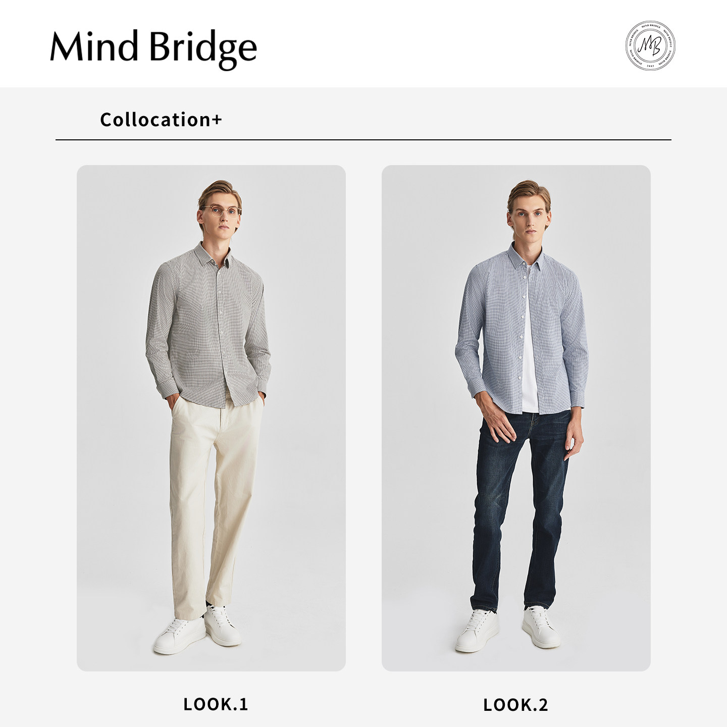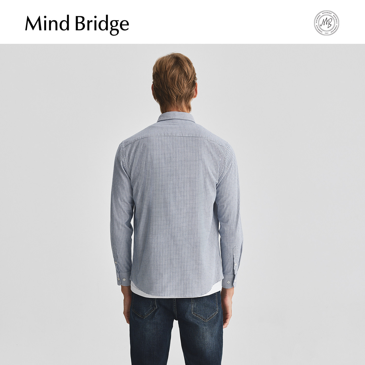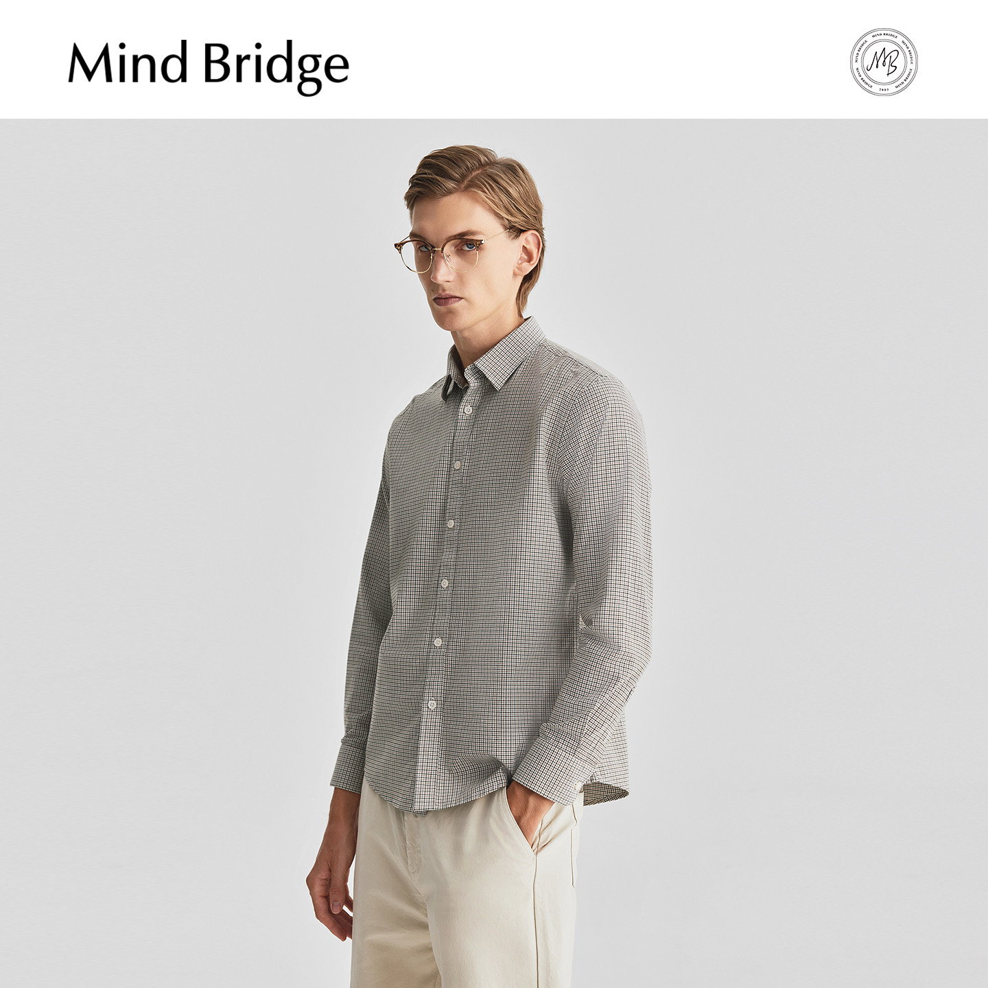 📚 Mind Bridge格子翻领长袖衬衫秋季通勤休闲上衣男士商务百搭衬衣