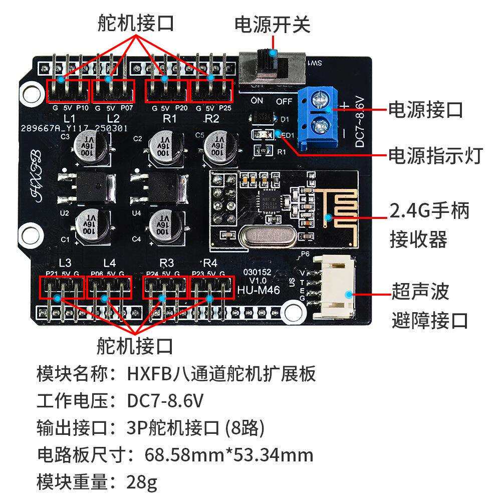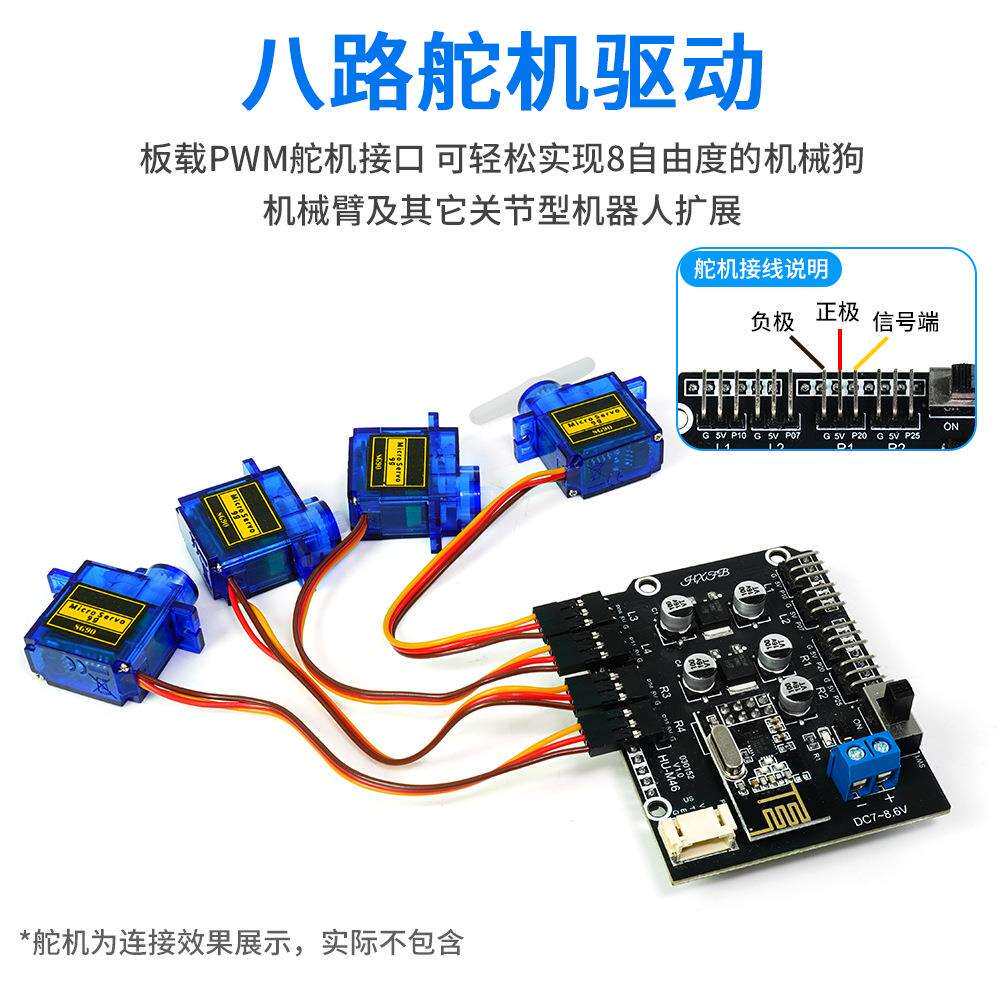 📚 8路舵PWM机扩展板机器容人械臂控制兼超声波2.4G手XHR柄舵机驱机