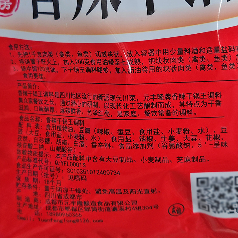 📚 元丰隆香辣干锅王调料150g麻辣香锅酱烧排骨火锅底料家用酱料调料