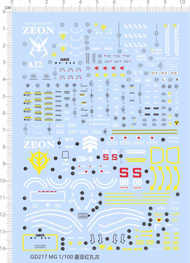 📚 GD217整版胶MG夏亚红扎古手办红有三红扎zaku敢达纸模型水贴1/100