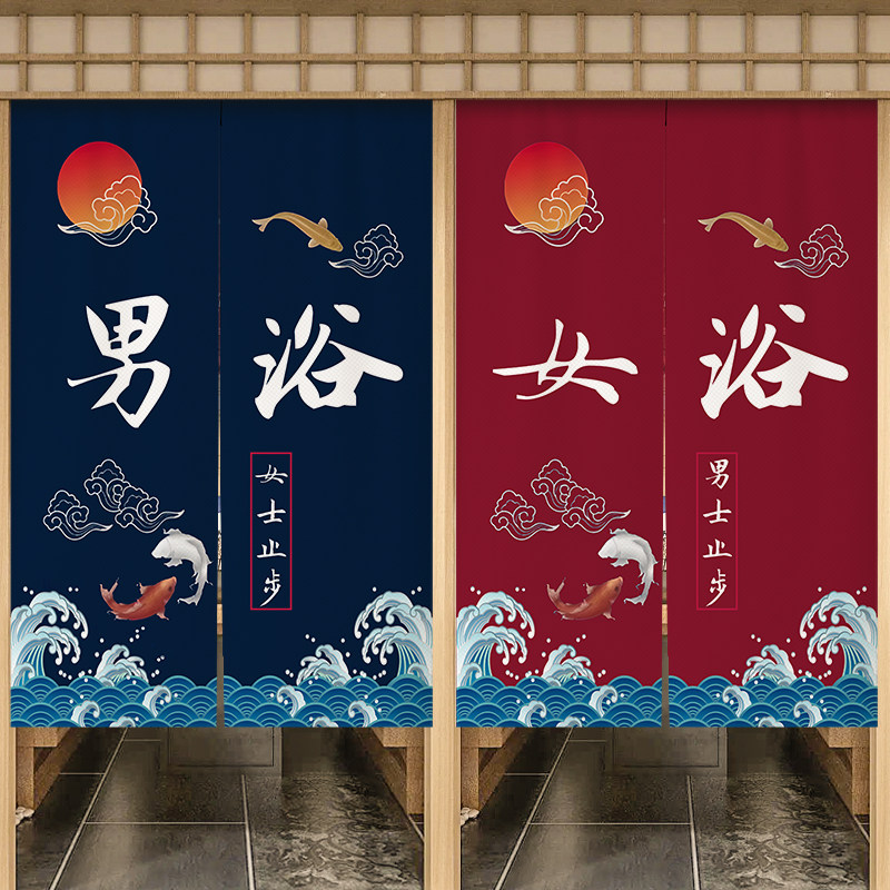 📚 男女浴门帘足浴h澡堂中式挂帘男女宾遮挡半帘免打孔洗浴中心隔断