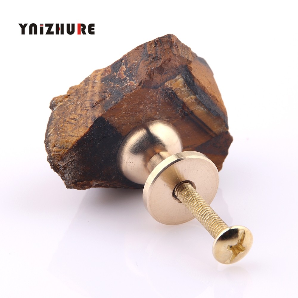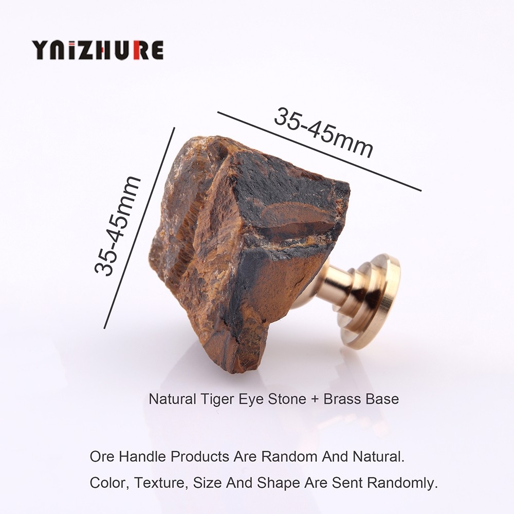 📚 天然虎眼矿石拉手轻奢欧洲极简自然主义抽屉柜门单孔黄铜小把手柄