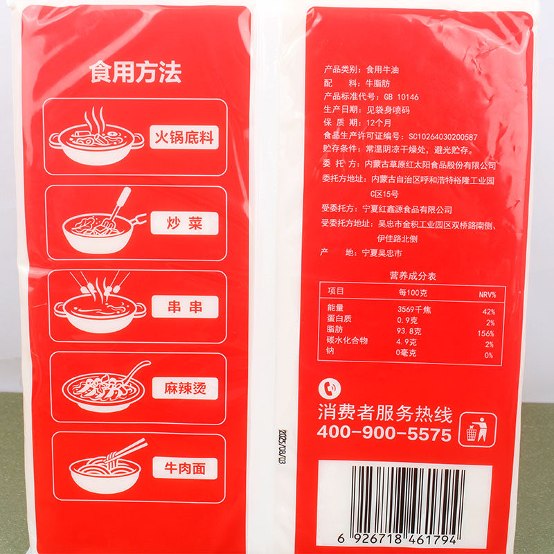 📚 内蒙古草原红太阳精炼牛油2.5KG清真食品食用牛油商用火锅店用