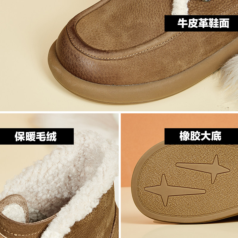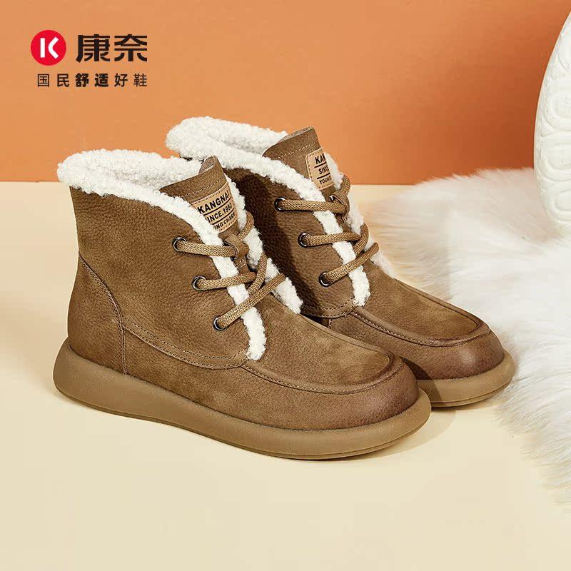 📚 康奈女靴加厚保暖雪地靴平底冬季加绒英伦风真皮美拉德短靴子