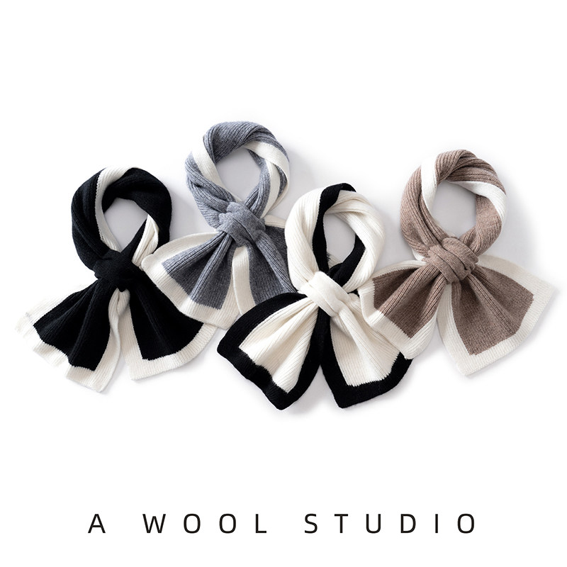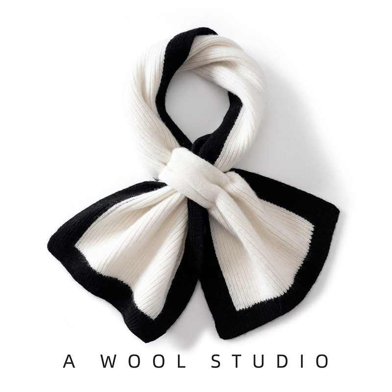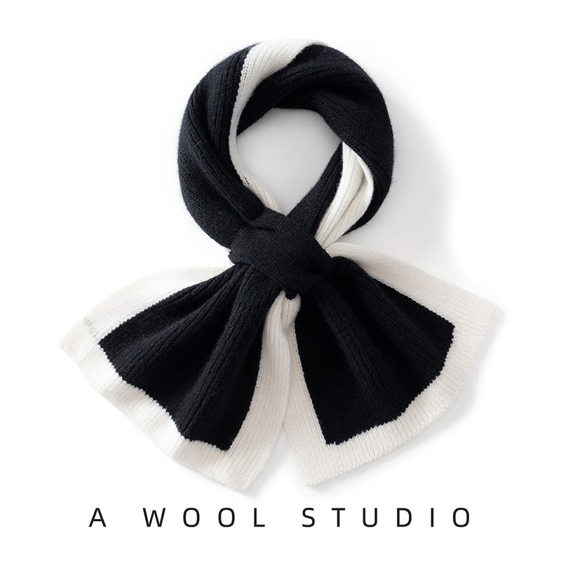 📚 新款纯羊毛穿插围巾女秋冬保暖拼色护颈针织小围巾百搭护脖洋气款