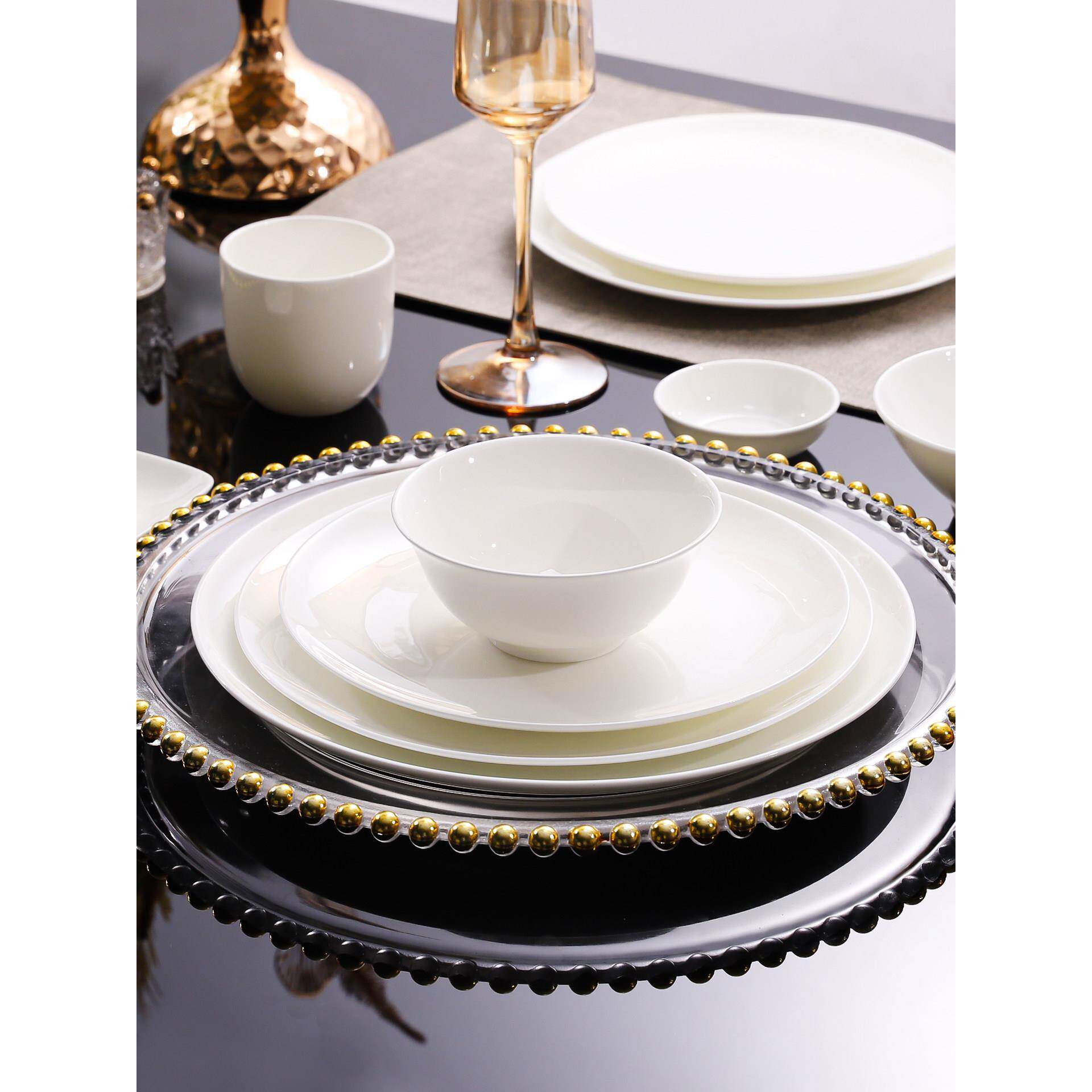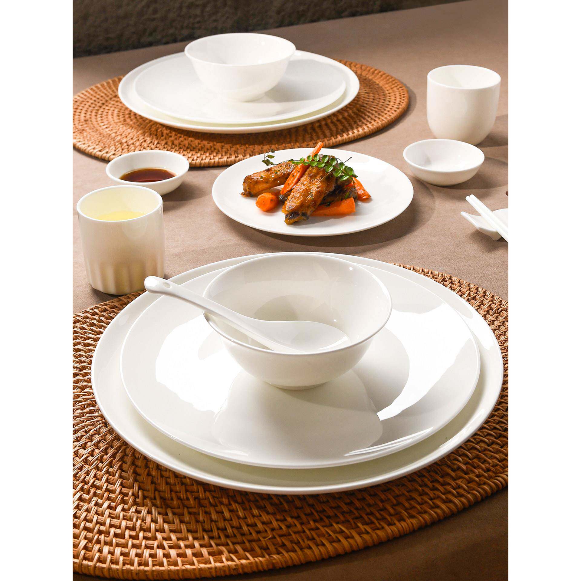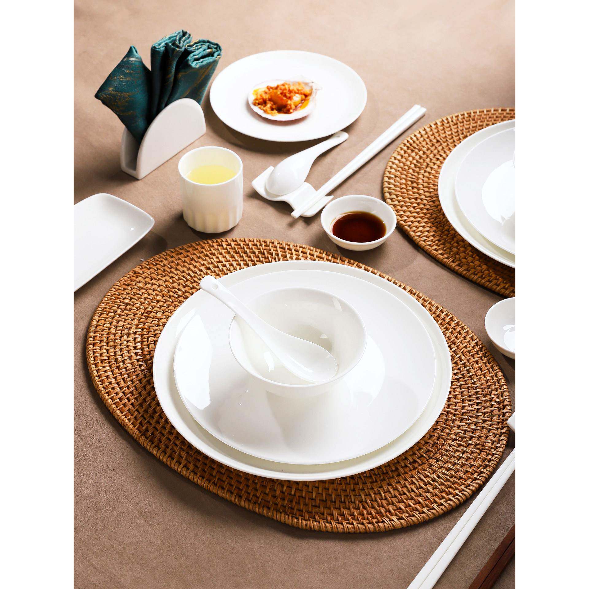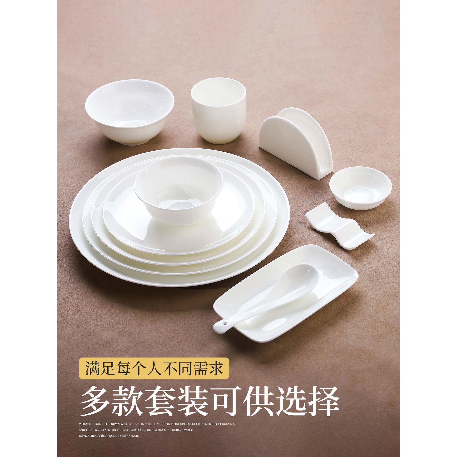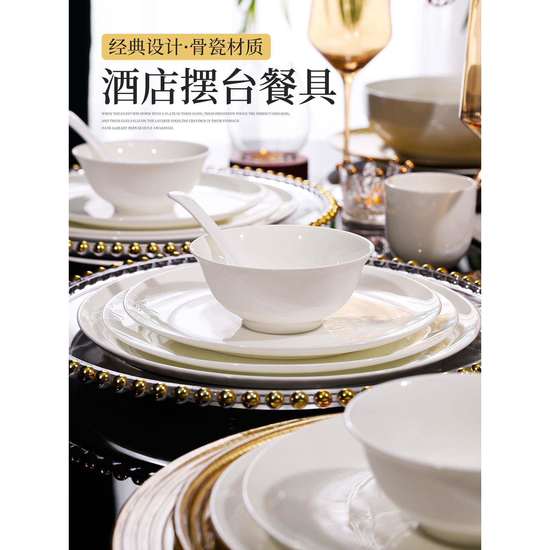 📚 纯白骨瓷酒店私人会所饭店摆台专用餐具用品大全高端盘子碗碟套装