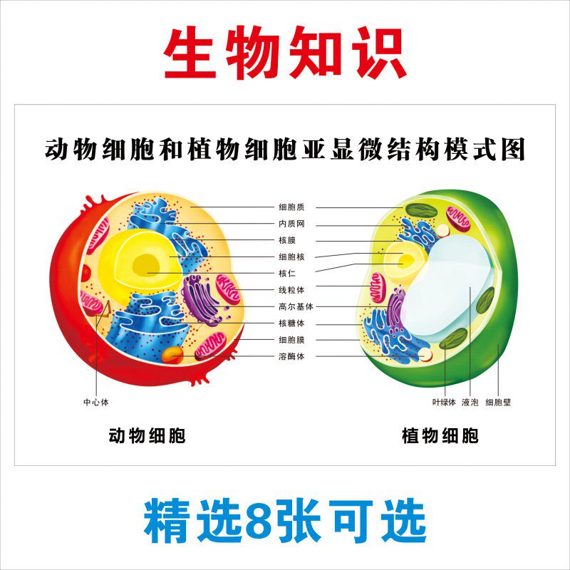 📚 初高中生物知识动植物细胞结构病毒细菌模式图挂食物链花结构墙贴