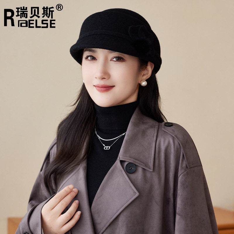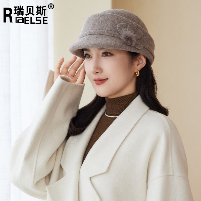 📚 女款帽子洋气时髦冬季女士中年妈妈保暖全羊毛呢马术帽复古渔夫帽